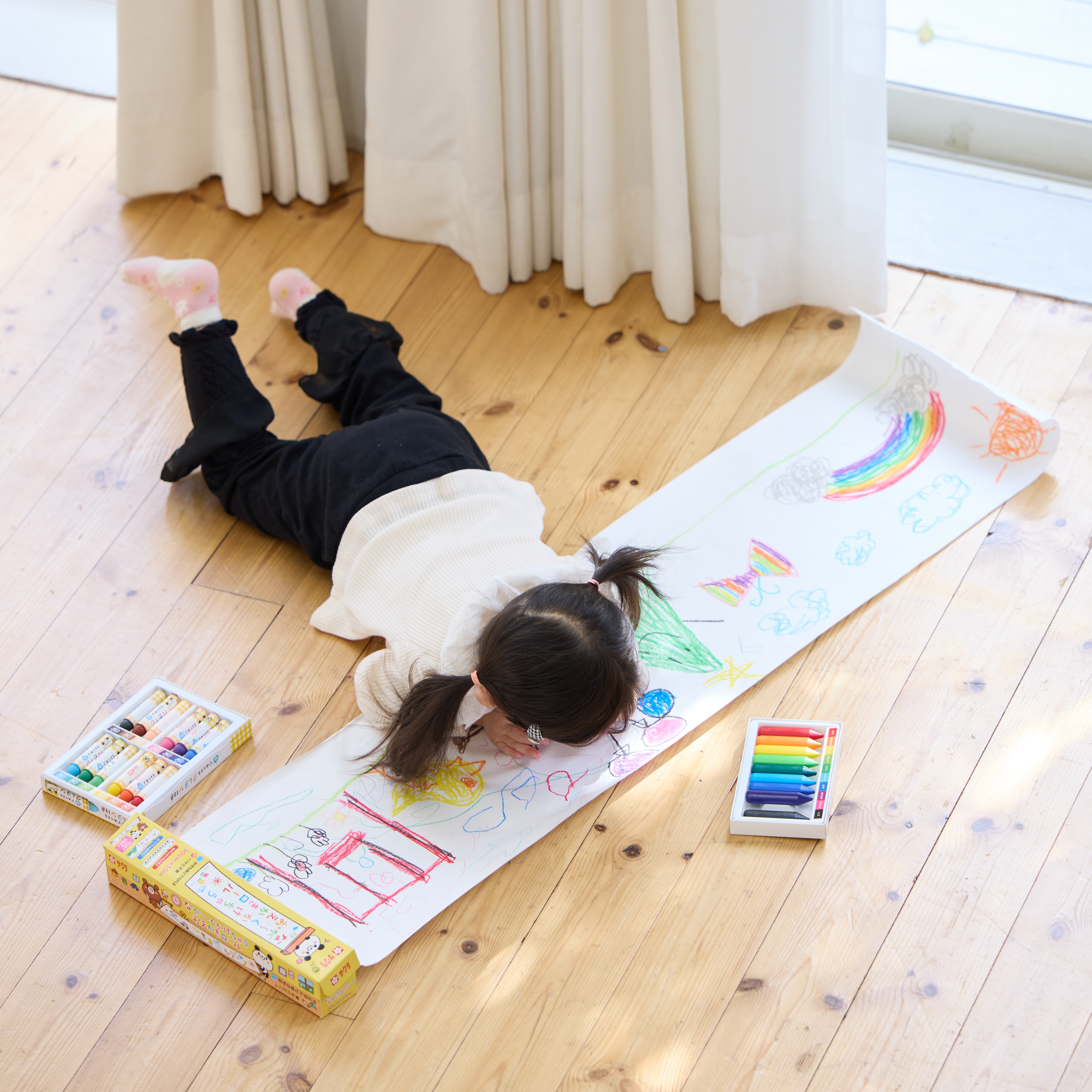 のびのびと好きな長さで描ける「おえかきロール」と 整理しやすい「バインダー式おえ…