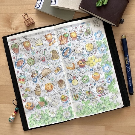 【トラベラーズノートの使い方提案】ピグマで描く、月間ダイアリーひとマス絵日記
