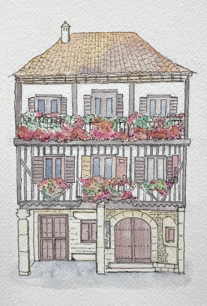 透明水彩、ペン