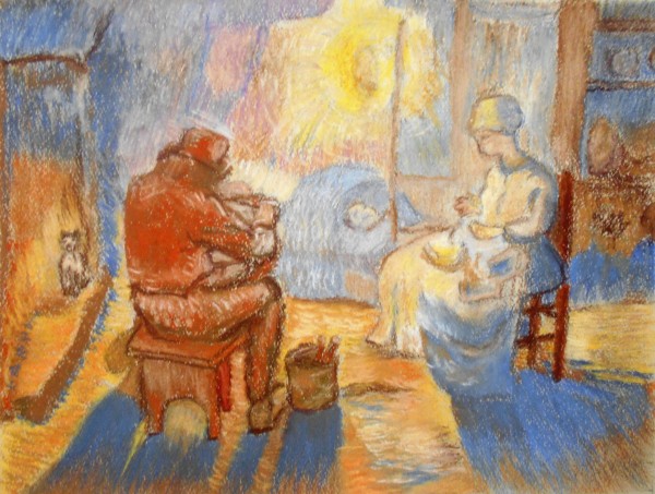 夜なべ(ゴッホ模写)