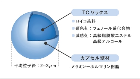 化学的変化を安定的かつ繰返し行うために、マイクロカプセルに色材を閉じ込めてあります。