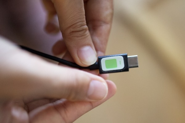 スマホの充電ケーブルにも貼れるくらい、小さな物にも貼りやすい、とお喜びの様子でした。
