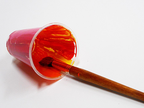 3色の工作ポスターカラーでカップの内側を塗って乾かします。