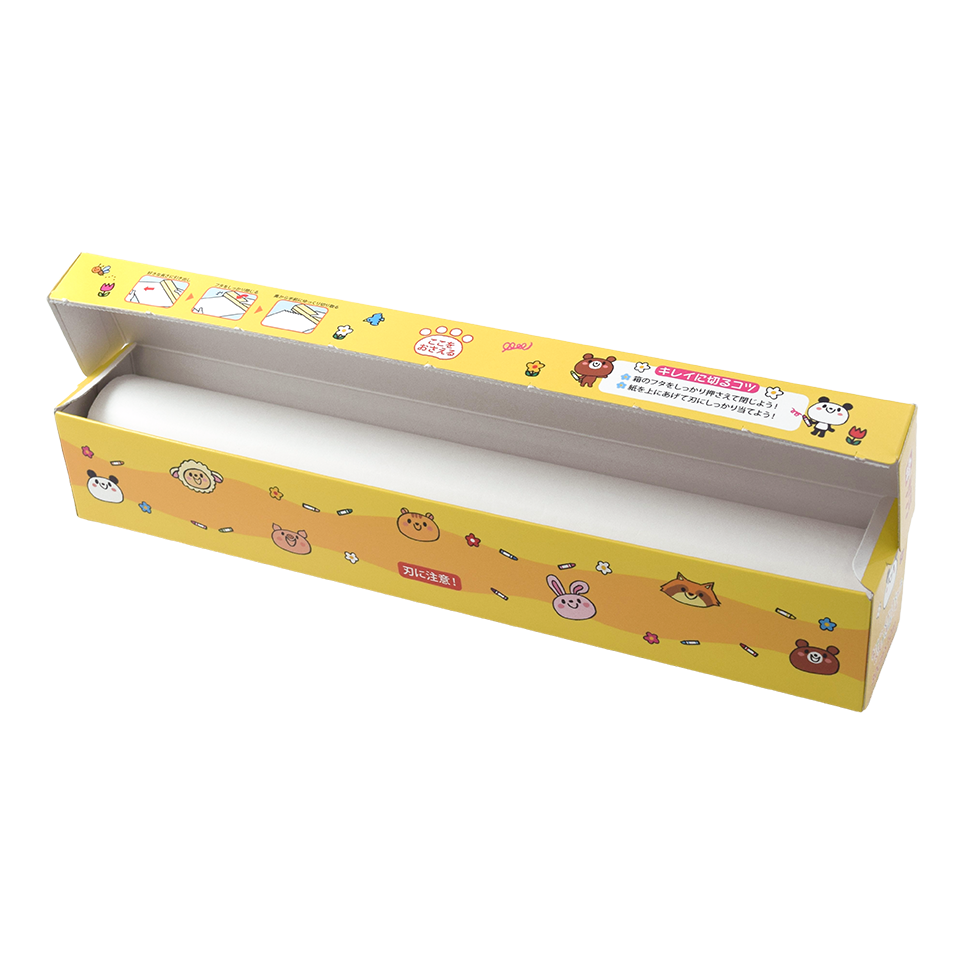 ●個装箱にプラ刃が付いていて、ハサミなしで好きな長さに切れます。※プラ刃は手を切りづらいウェーブカットを施しています。